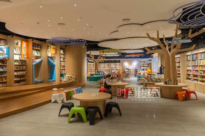 兒童區(qū)的書架采用了橙色、藍色和綠色等更多豐富的色彩,滿滿的童趣深受小朋友的喜愛。