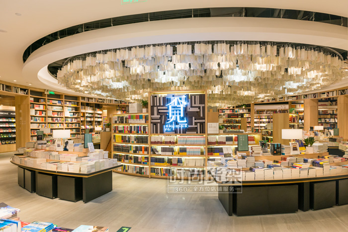 遠遠的向書店中庭看去,你還以為天花板上使用的是水晶吊燈,但走近了才發(fā)現(xiàn)它是用一頁頁書簽紙做的創(chuàng)意吊燈!質(zhì)樸的材質(zhì)卻讓中庭獲得了華麗的視覺外觀。