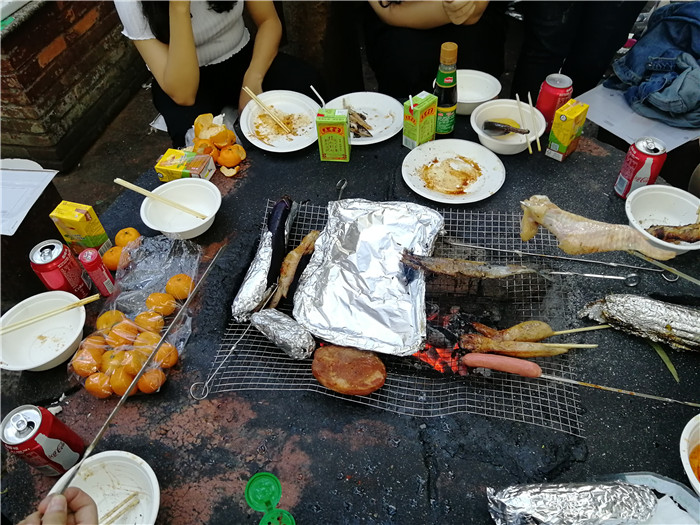 到達目的地后大家分成4桌落座,燒烤正式開始
