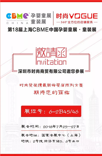 在此次2018 CBME中國孕嬰童展上,【時尚貨架】即將展出我們最新設(shè)計的母嬰店陳列道具,屆時定會讓廣大參展觀眾眼前一亮!歡迎大家前來時尚展位參觀。
