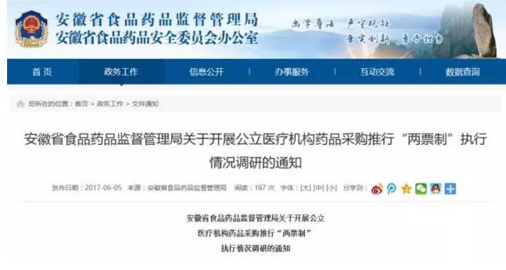 通知顯示,此次調(diào)研共計一個月零五天,即從公示的6月5日起至7月10日止。應(yīng)該說,此次安徽就兩票制執(zhí)行情況的調(diào)研,是官方正視兩票制執(zhí)行問題的良好發(fā)端。鑒于安徽省是醫(yī)改試點省份,其調(diào)研的情況以及征集的建議,很有可能會被國家采納進(jìn)而推廣全國。果真如此,兩票制或有重大調(diào)整,也就只是時間的事兒了。