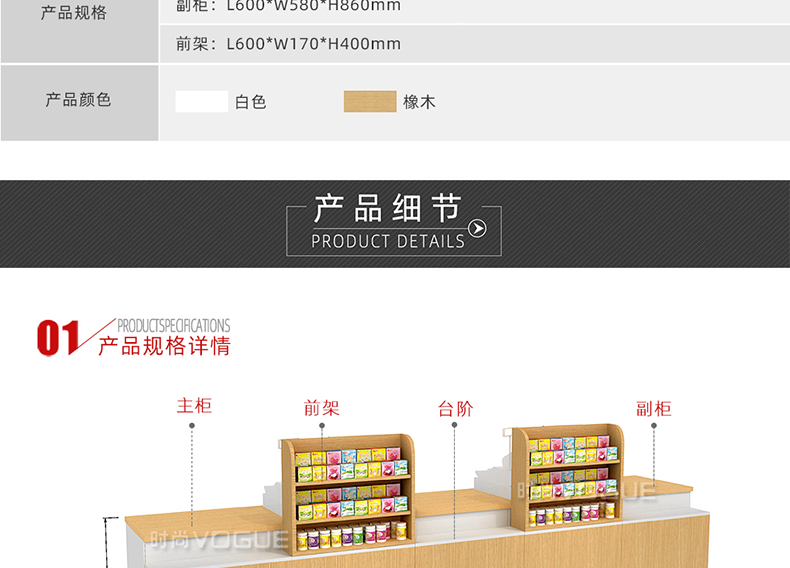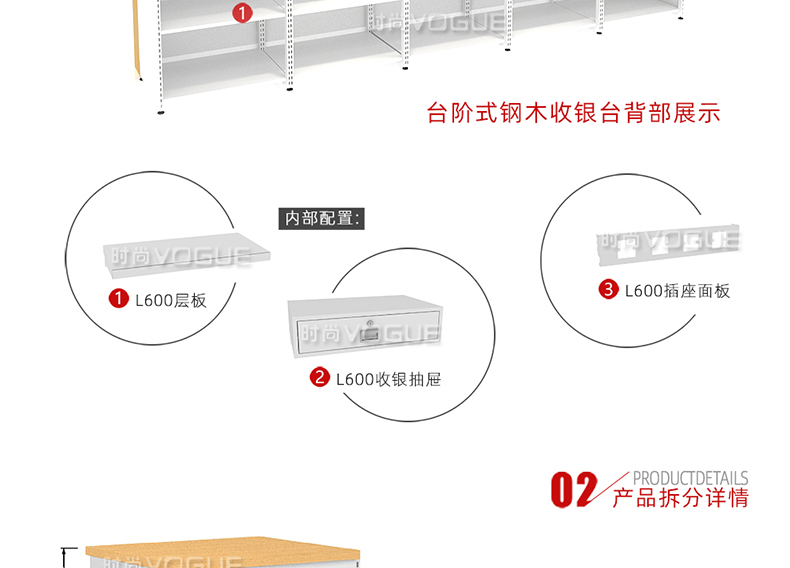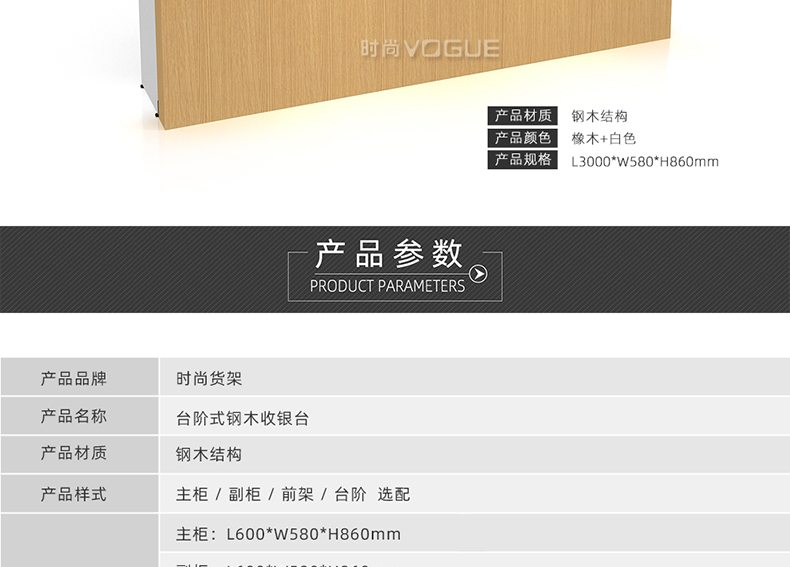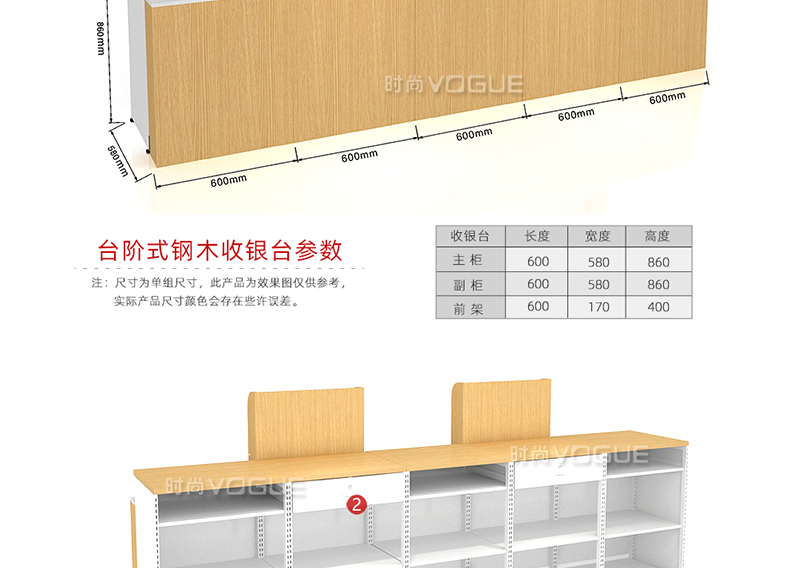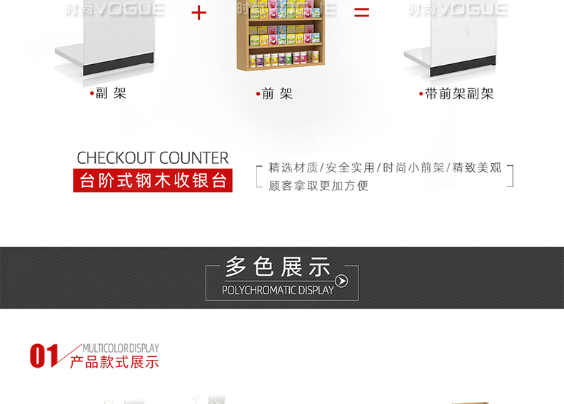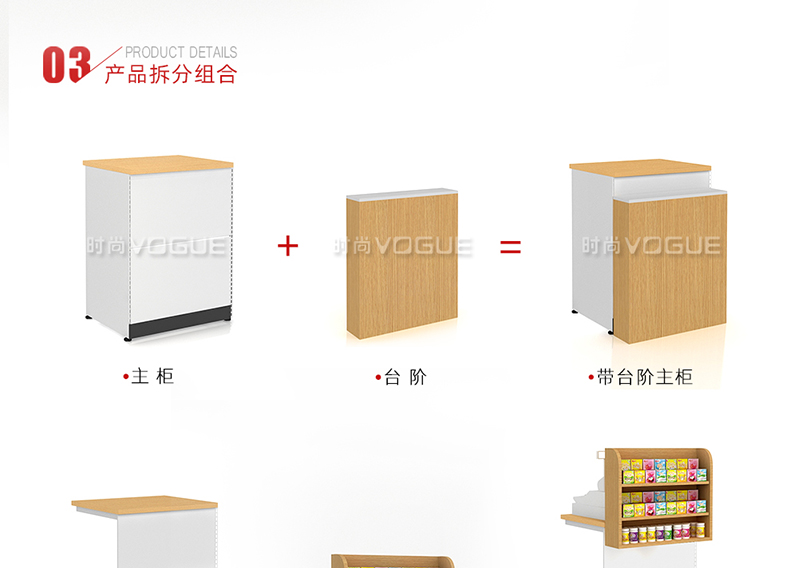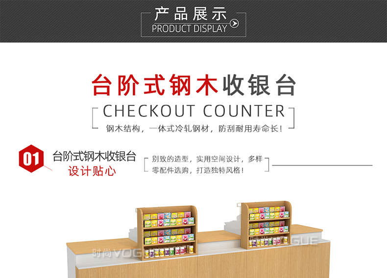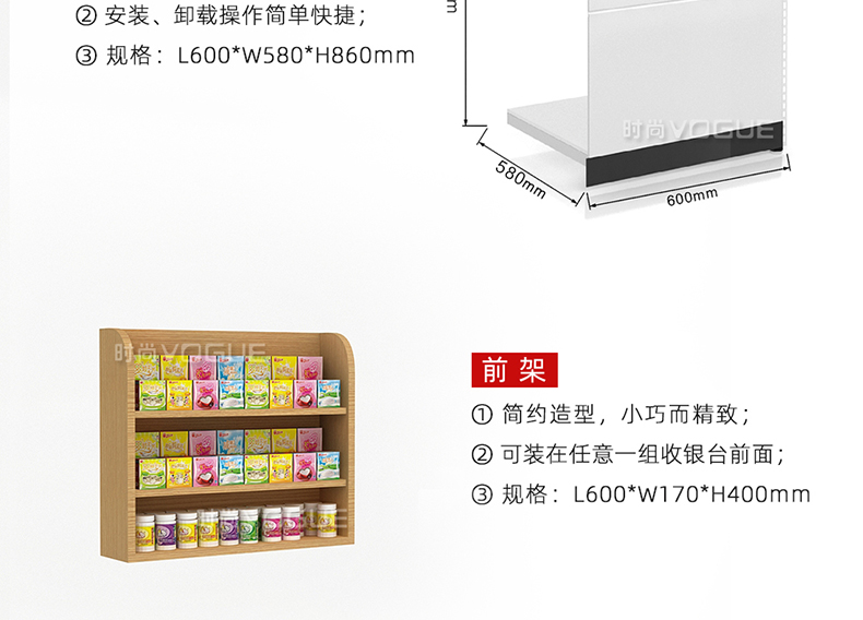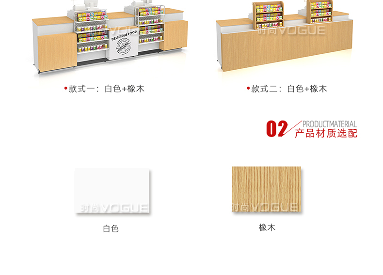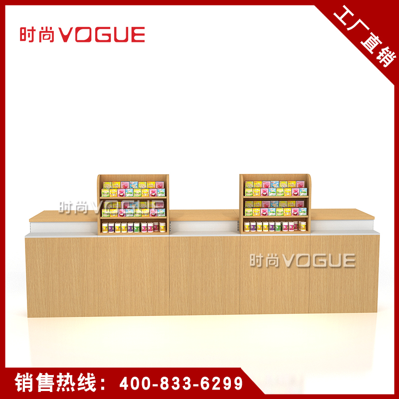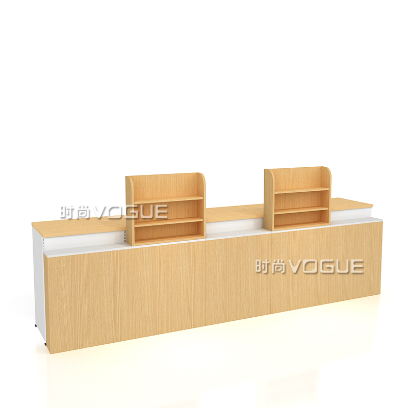• 產(chǎn)品描述:這是時尚貨架針對母嬰店收銀區(qū)陳列最新推出的一款紅櫻桃木紋收銀臺。