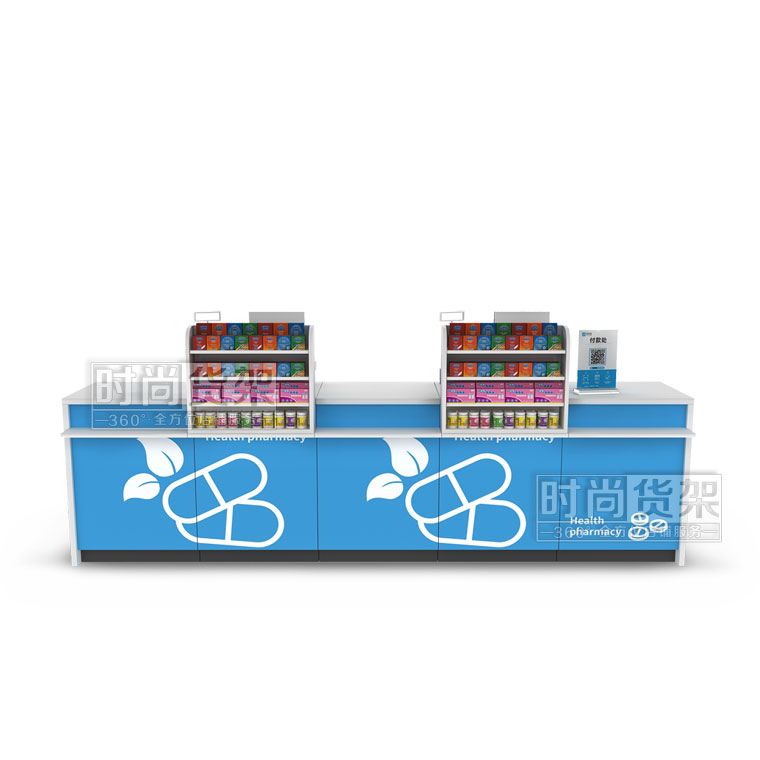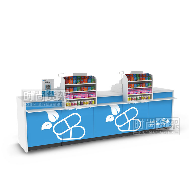 這是藥店貨架廠家【時尚貨架】最新打造的一款藥店收銀臺,如果你想了解其他的藥店貨架產(chǎn)品,請點擊m.yuanyangcm.com/pharmacy/。