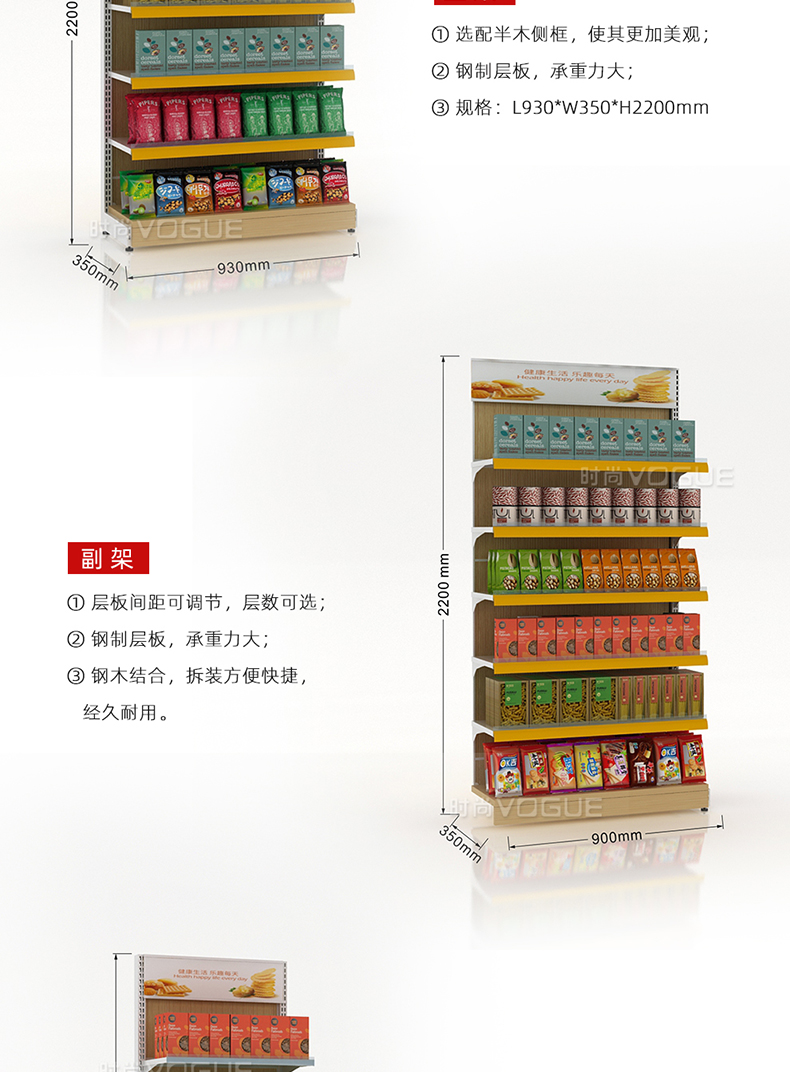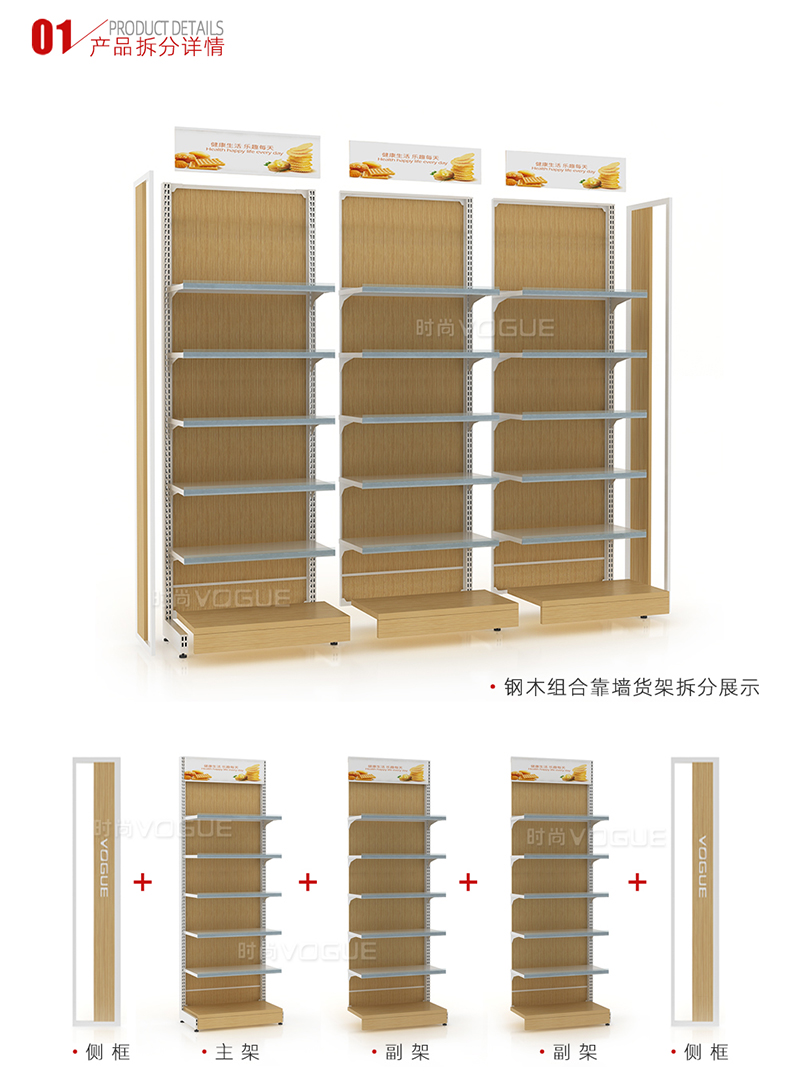 便利店貨架_木背板半木側(cè)框帶地臺