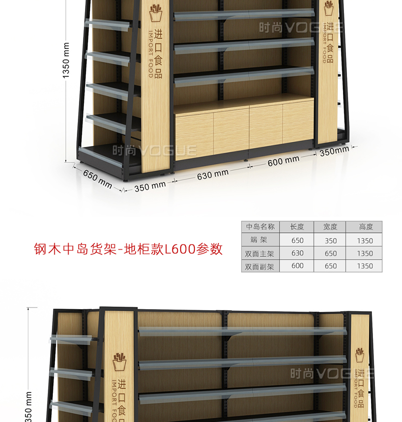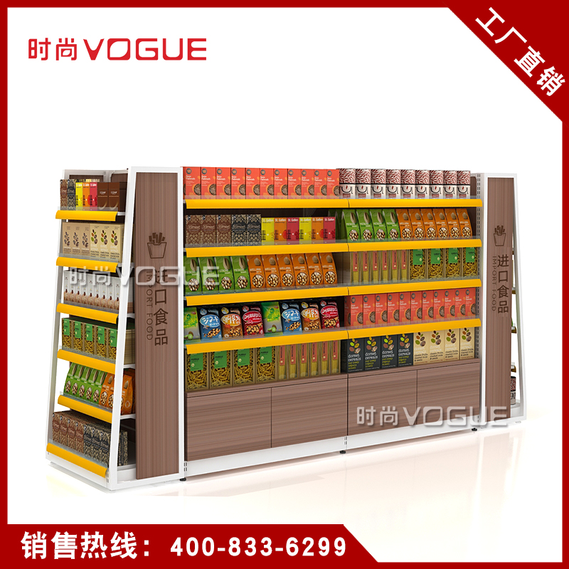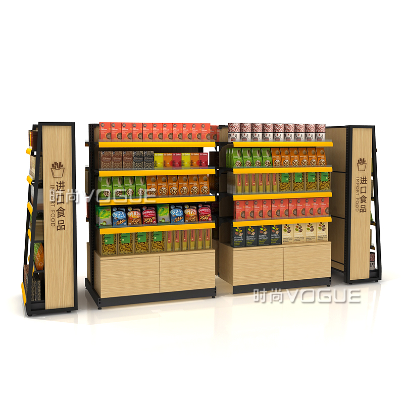 - 產(chǎn)品描述:本款木背板食品貨架是便利店貨架廠家最新推出的一款便利店貨架,底部地柜設(shè)計(jì)增加儲(chǔ)物功能。