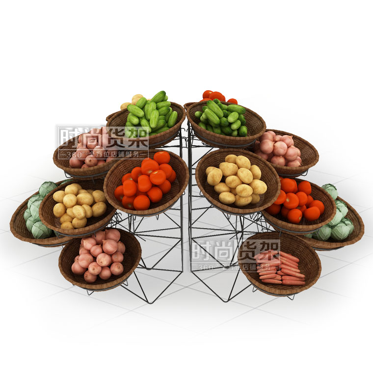 【產(chǎn)品名稱】時(shí)尚便利店蔬果促銷籃/鋼制水果蔬菜促銷架/超市小型生鮮促銷籃