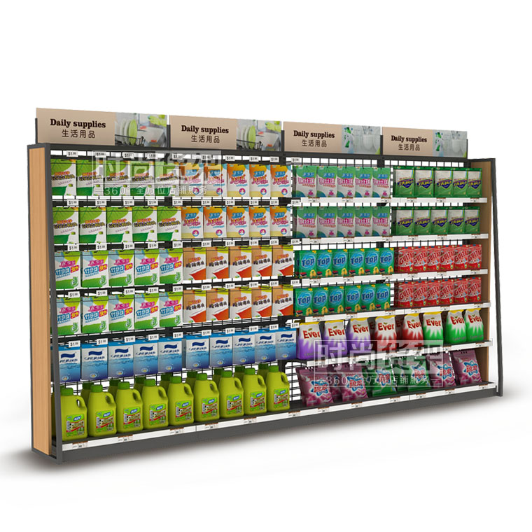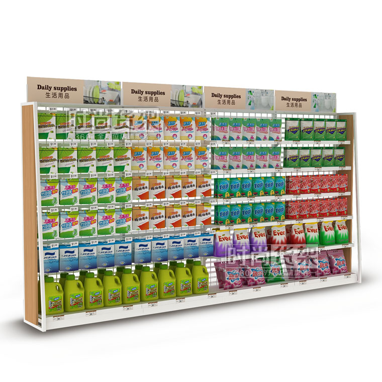- 產(chǎn)品描述: 清潔用品貨架是一款適用于便利店日品區(qū)的單面靠墻貨架