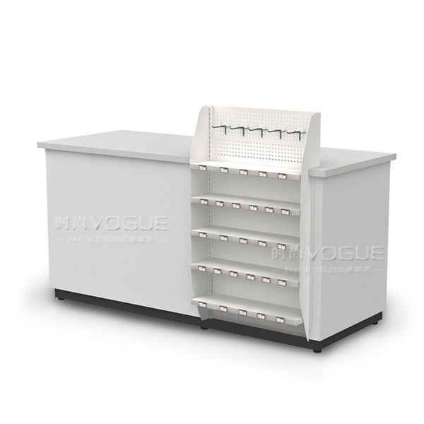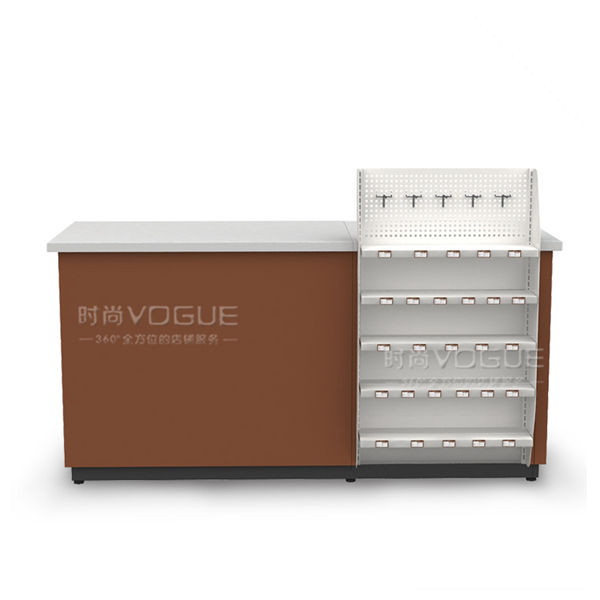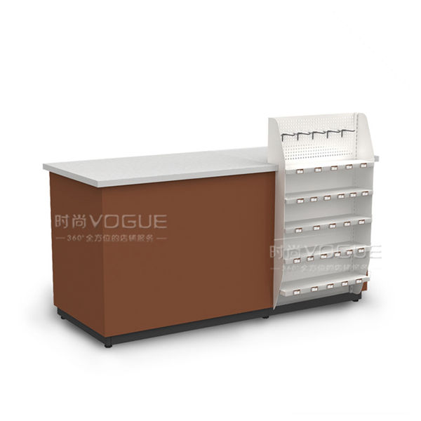 - 產(chǎn)品描述:1.5米便利店收銀臺(tái)是時(shí)尚貨架2017年新推出的一款組合式收銀柜臺(tái),有白色、咖啡色可以選擇。