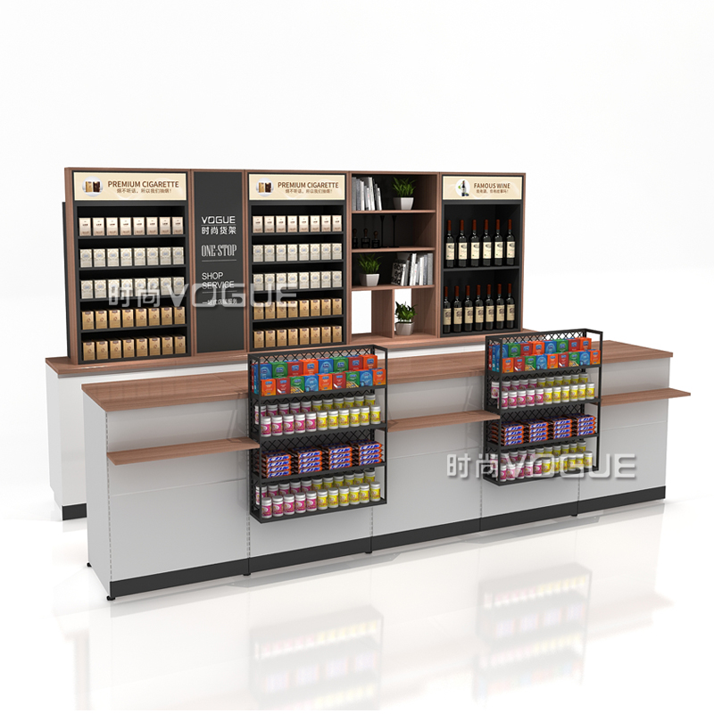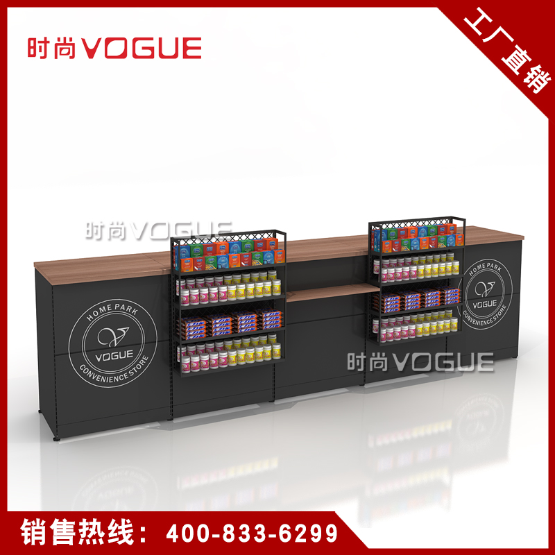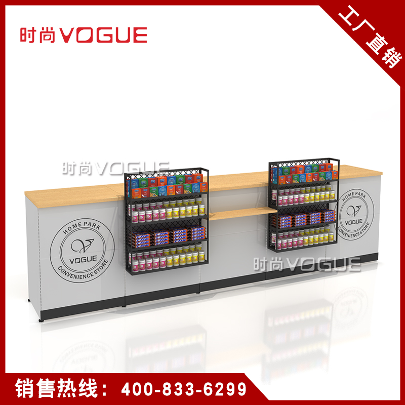 - 產(chǎn)品描述:本款便利店收銀臺(tái)是時(shí)尚貨架為連鎖便利店設(shè)計(jì)生產(chǎn)的一款多功能組合式便利店收銀臺(tái)。