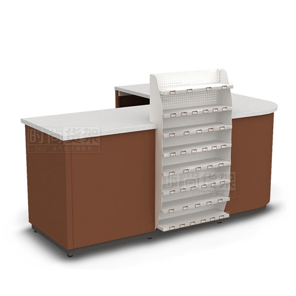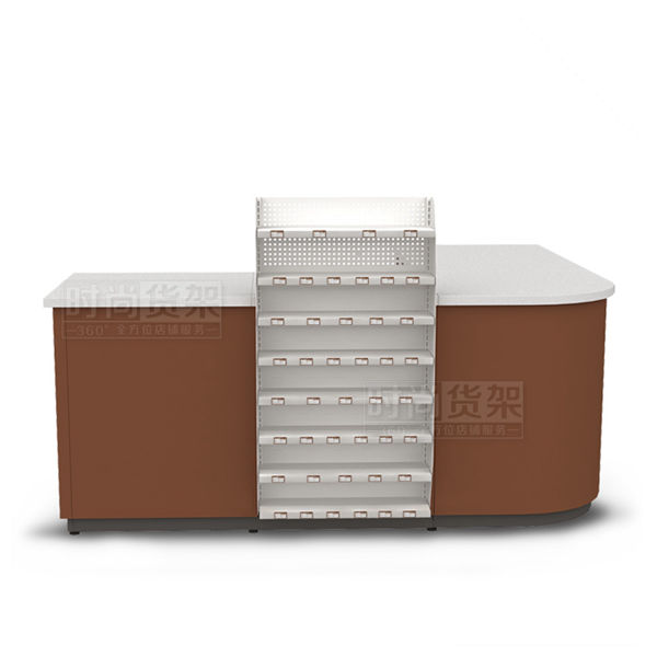 - 產(chǎn)品描述:便利店收銀臺(tái)是時(shí)尚貨架2017年新推出的一款組合式收銀柜臺(tái),有白色、咖啡色可以選擇。
