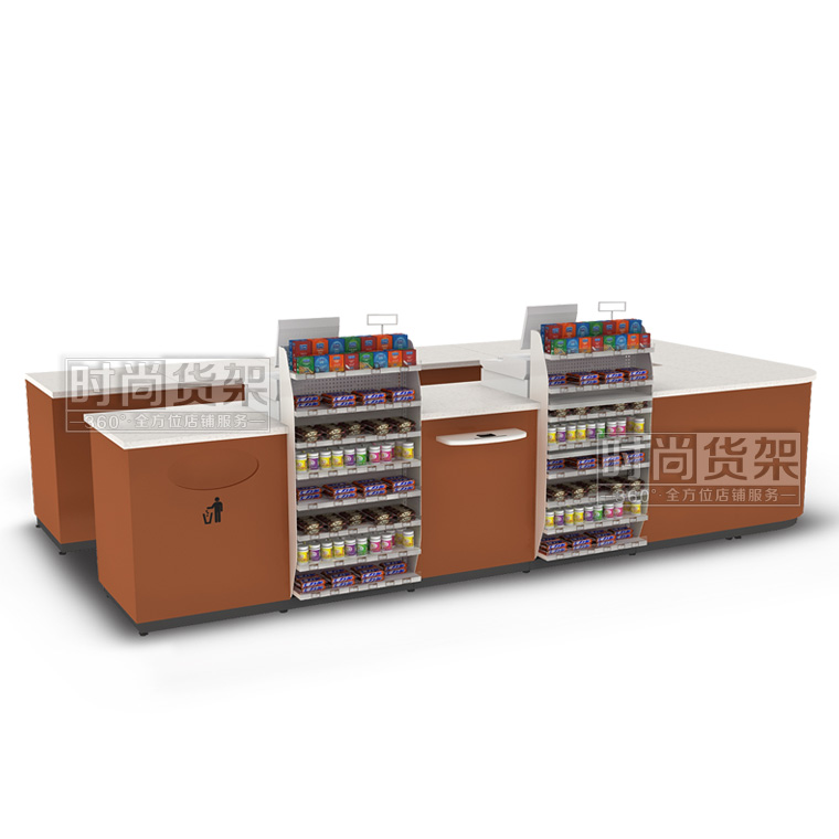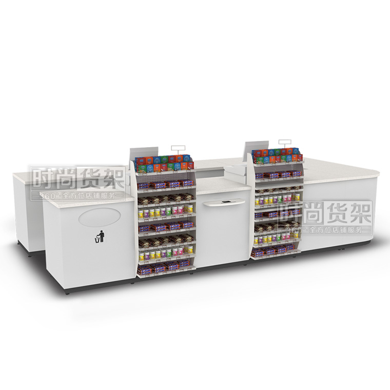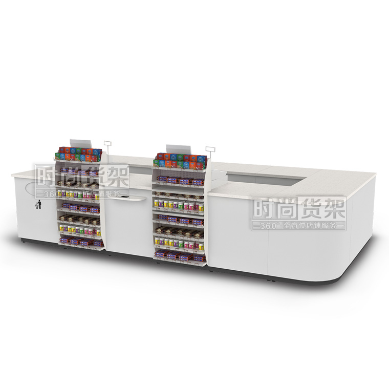 本款便利店收銀臺是時尚貨架為連鎖便利店設(shè)計生產(chǎn)的一款多功能組合式便利店收銀臺,如需了解更多小型便利店收銀臺,請咨詢客服人員!