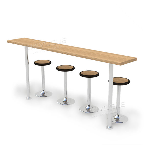 【特點(diǎn)】不銹鋼立腳承重強(qiáng)且不易變形,吧臺(tái)長(zhǎng)度可定制,圓形吧椅有效避免磕碰受傷