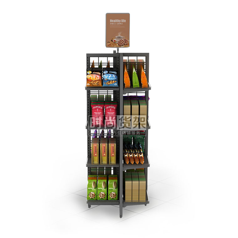 - 產(chǎn)品描述:四面促銷架是時尚貨架為便利店設(shè)計生產(chǎn)的一款促銷型便利店貨架