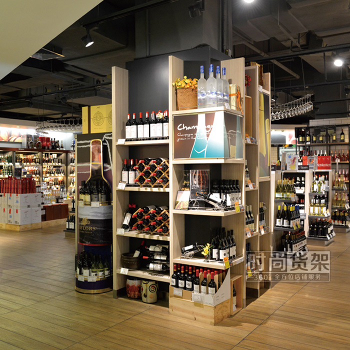 超市貨架_木質(zhì)紅酒包柱貨架